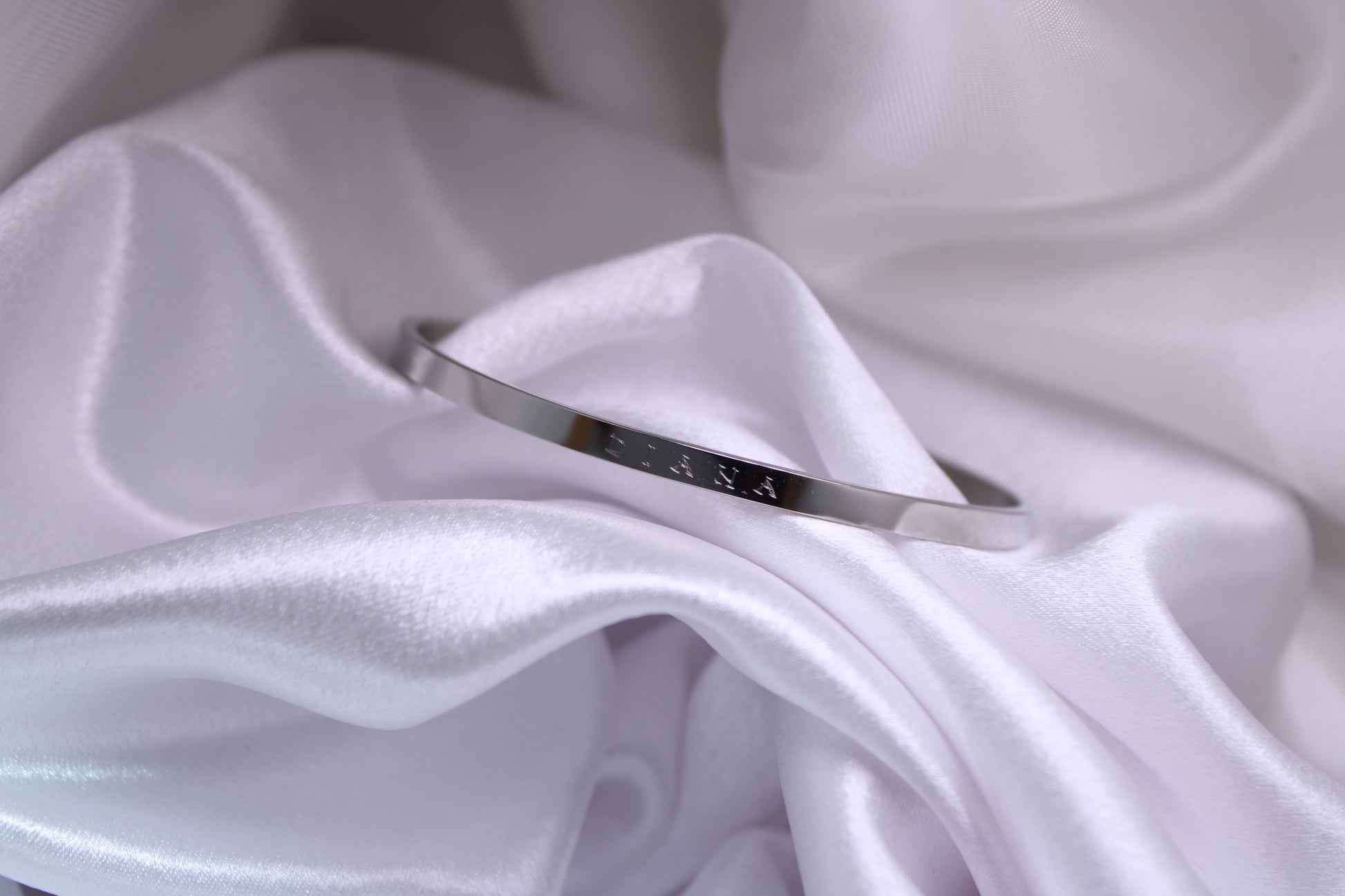 Our 4mm Silver Bangle, perfect for adding a personalized touch. We offer a hand-stamped engraving, which i craft personally. While each hand-stamped piece may have slight variations, i take great care in every impression, ensuring a unique and beautifully crafted result each time.