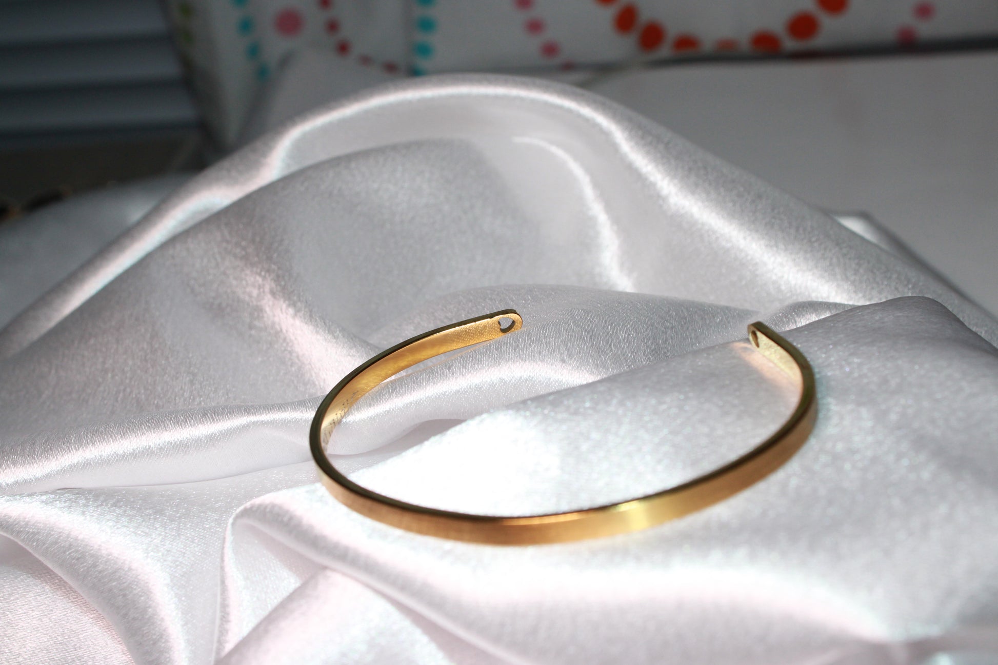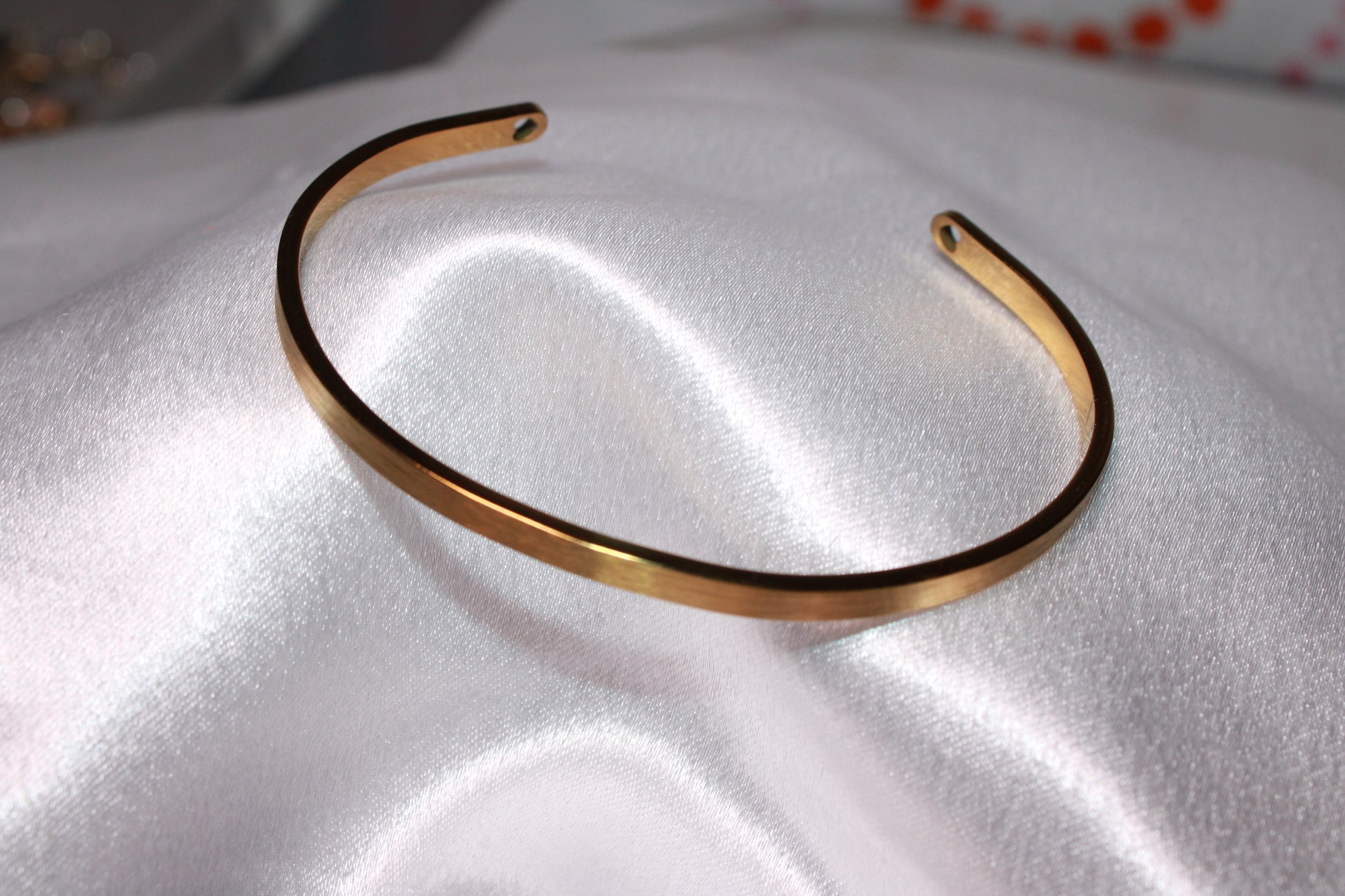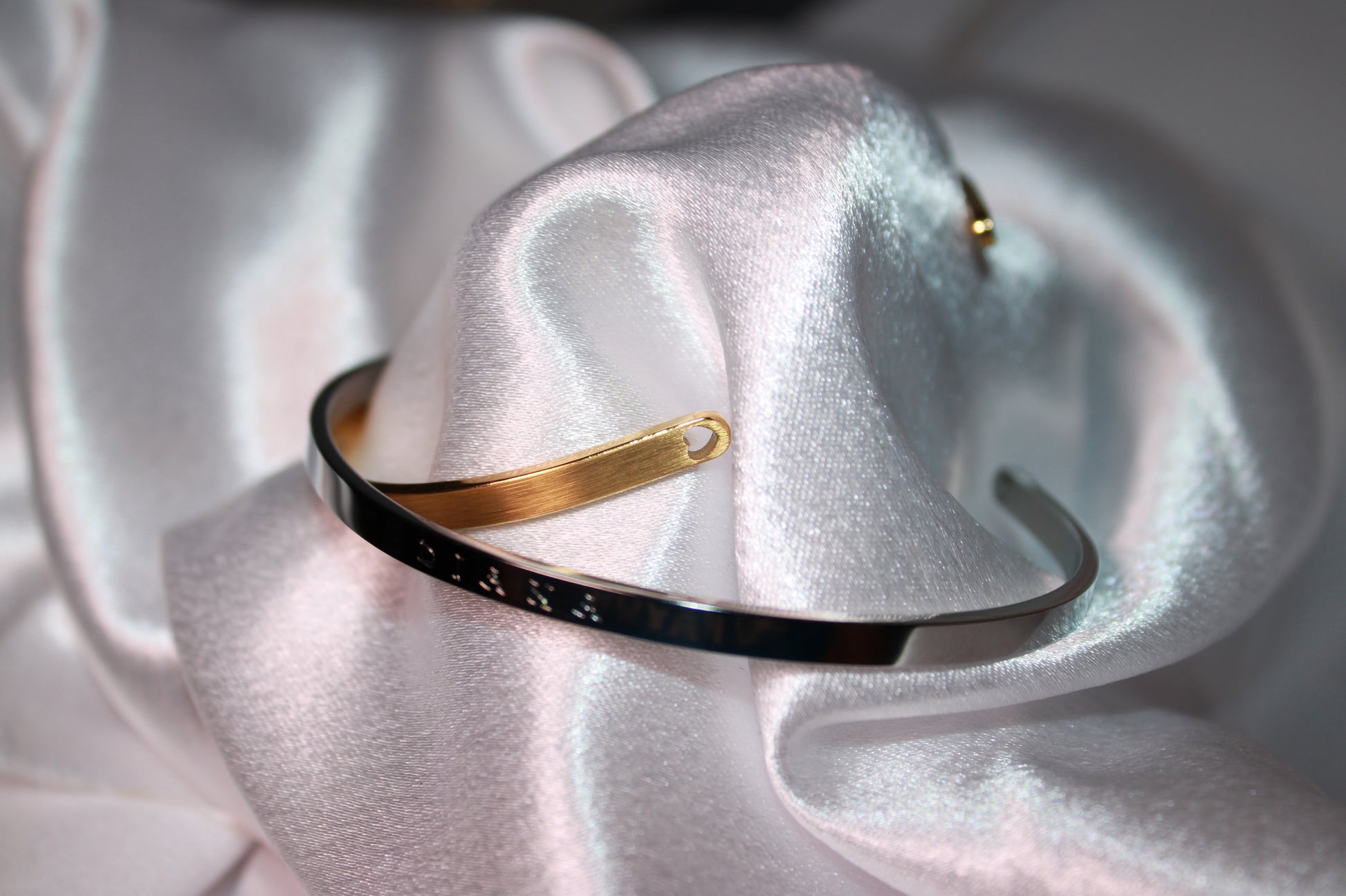 Our 4 mm Golden Bangle, perfect for adding a personalized touch. We offer a hand-stamped engraving, which i craft personally. While each hand-stamped piece may have slight variations, i take great care in every impression, ensuring a unique and beautifully crafted result each time.